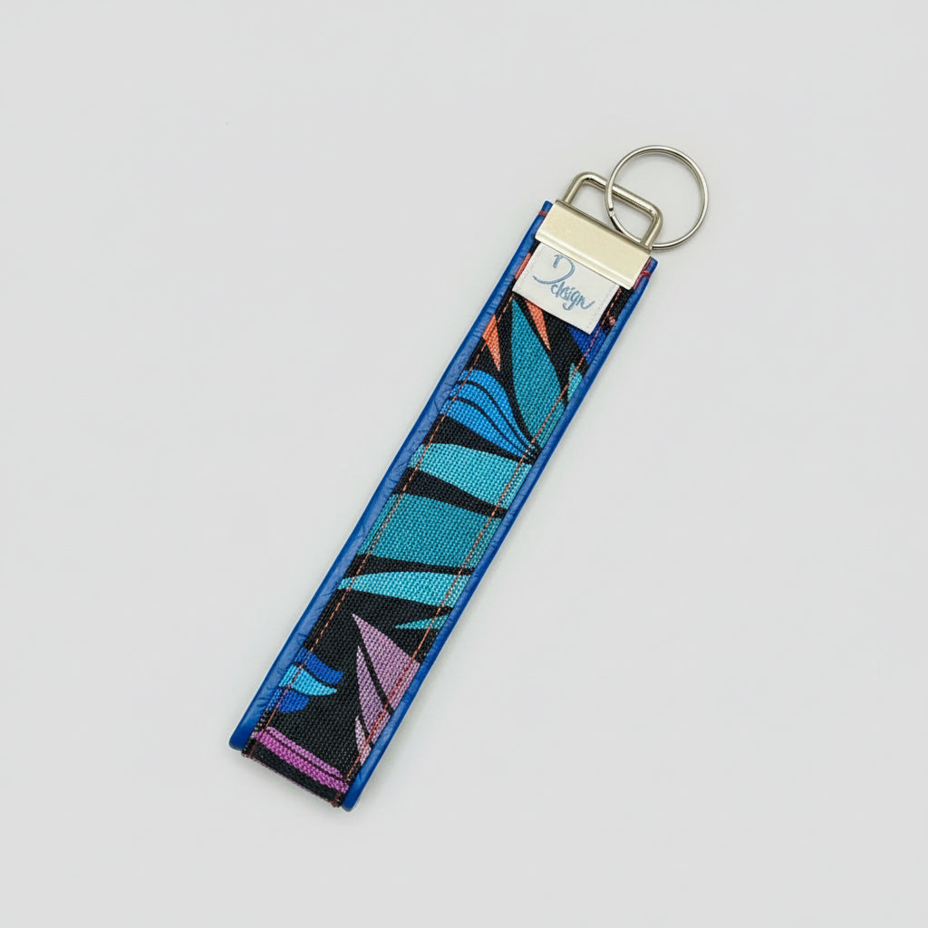 Handcrafted wristlet keychain in exclusive Bdesign signature printed fabric. Lightweight, durable, and designed to add colour, charm, and practicality to your everyday essentials.