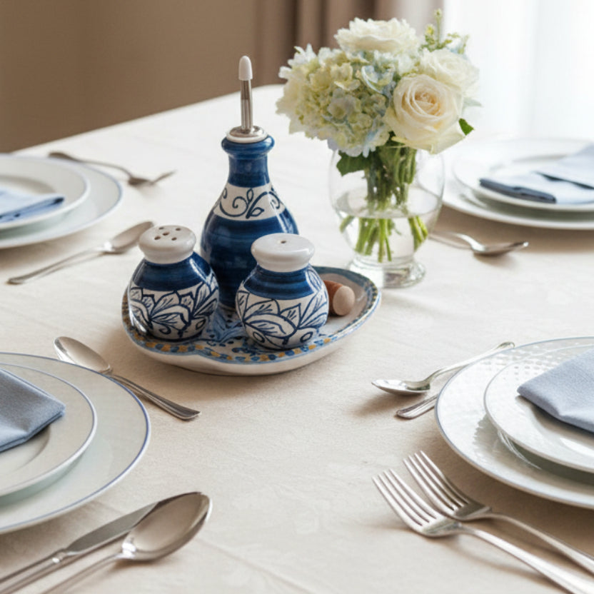 Bring a splash of Mediterranean elegance to your dining experience with our handcrafted salt and pepper shakers, handpainted with our popular Bird of Paradise blue and white design. Why choose this set: