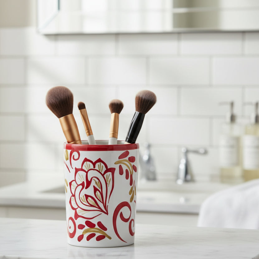 A petite hand-painted ceramic vase that brings artisan charm to any space. This 11cm mini vase is perfect for single stems, small bouquets, or as a decorative accent on desks, shelves, and windowsills.